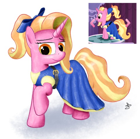 Luster dawn with a dress, as seen in the gameloft mlp gameThis was also uploaded to:TwitterDeviantArtDerpibooru